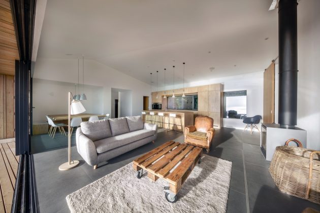 The result is a playful and calm space for the owners to enjoy weekends with family and friends whilst taking in the spectacular and isolated location in which it sits.
