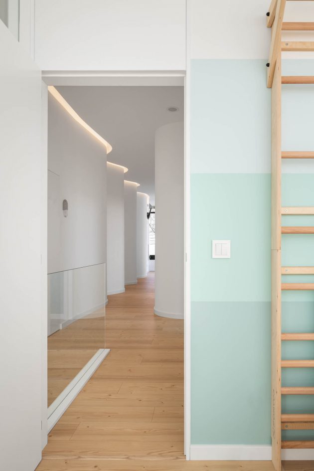 From here, we developed the project with the basic idea, that the Human Body is the central point of our project, the curve as an expression in the form, in a fluid way, with a present function of concealing the pillars that existed protruding from the walls and fill the edges of some of the compartments, crown moldings and ceilings now created.