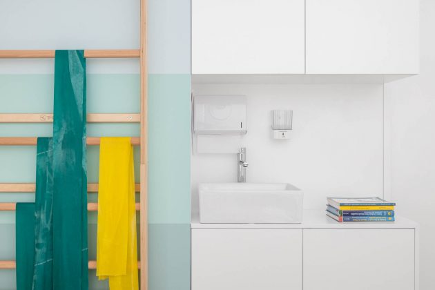 After this path, spaces appear, corresponding through color, to the four great elements (Earth, Air, Fire, Water), the intention is that those who visit the space, feel good, in communion with nature, with more health and more energy, and that is also the function of the Architect, offering through light, shape, textures and colors, emotions and moods that provide a good experience to the user of the space.