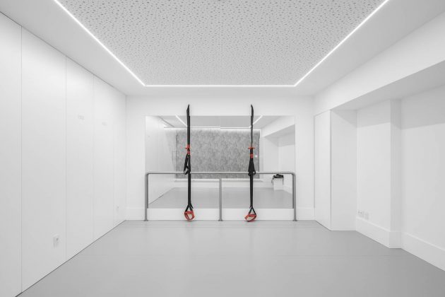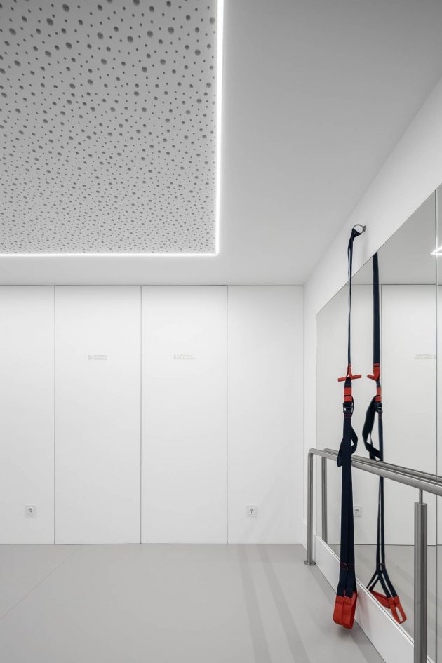 The challenge was launched, we studied the program in line with the client to create four rooms: Integrated Medicine, Wellness and Dermatofunctional, Physiotherapy and Group Classes. In addition, other spaces were created to complement the previous ones, namely: Reception, sanitary facilities, living space and a small kitchen space for employees, with different services and public circuits and spaces.