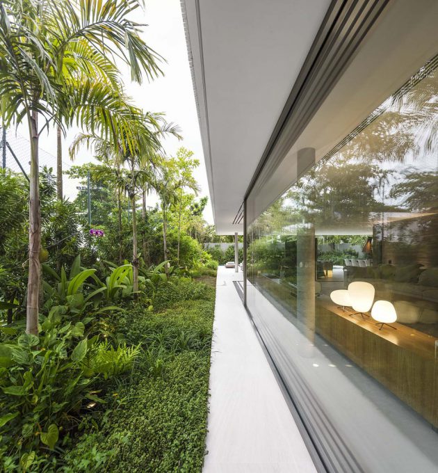 Sliding glass walls ensure cross-ventilation and visual openness.