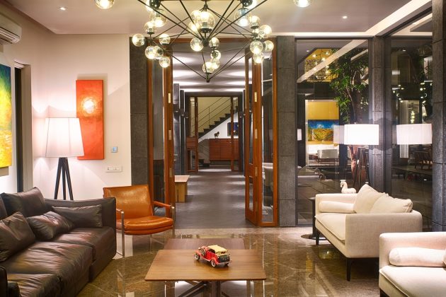 The Mango Tree House, is a private residence of Mr. Jain in Bhopal-India. As the name suggest this house is built around several large 50 years old mango trees. The house consists of two major blocks connected through passages. One accommodates private areas such as living room, bedrooms, kitchen & dinning – where the other accommodates formal seating, guest room, studio, gym and swimming pool.