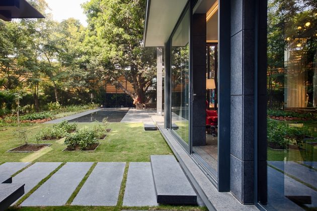 Mango trees were the most important elements of this site when we started thinking about designing this house. Experience of being under the large foliage of mango trees was our inspiration. We wanted to create private living spaces without compromising the feeling of being under foliage of mango trees.