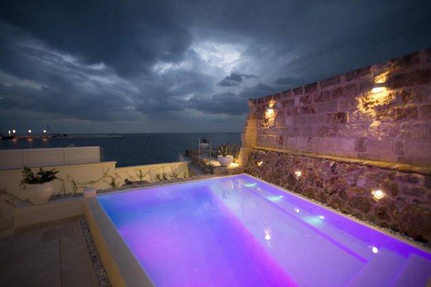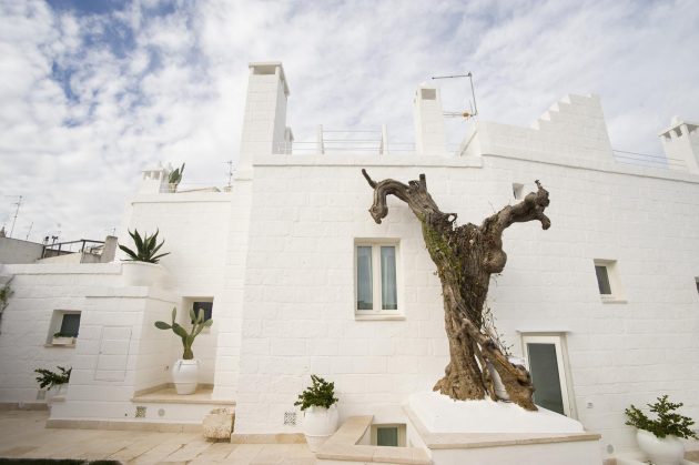 The hotel you are searching for is Don Ferrante undoubtedly! It is located in the historic center of MonopoliBari in an old fortress, on the cliff overlooking the sea. You will find lime and stone cladding for terraces and facades that stand out with the blue of the water. This is one of the appealing spaces on Earth between the sky and the sea to relax.