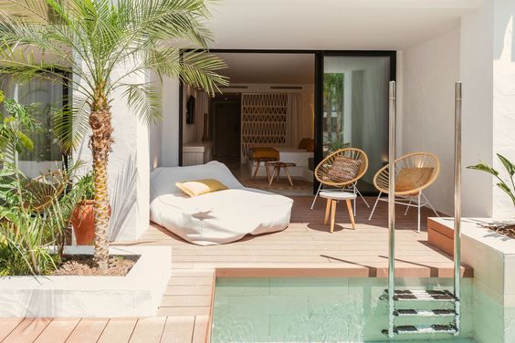 The materials make it possible to bring texture and cachet: here too, this is a part that is not negligible. For an Ibiza-inspired terrace decor, you will have to bet on natural materials, such as stone, and wood, but also natural fiber elements.