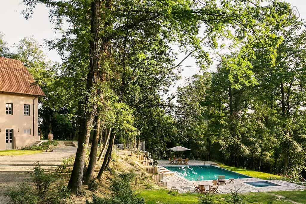 Casolare is a charming home tucked into the woods and perfect for those more sporty in nature. Its rural location and charming exterior make the rental feel like a secret hideaway, yet still close enough to some of the major cities in Tuscany for day trips. The retreat features three bedrooms, a pool, a barbecue area, a modern kitchen and dining area, fireplace, and high-end electronics.