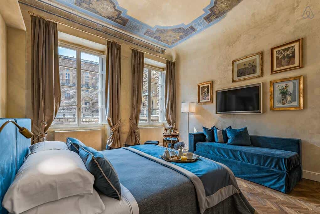 Capital is a downtown apartment located in the heart of Florence’s center and it will allow you to immerse yourself in the vibrant culture and history of the city. The apartment was recently renovated and now features a mix of authentic designs and modern amenities. This luxury rental has four bedrooms and accommodates the needs of up to eight guests. It has a fully equipped kitchen, designer furniture, and high-end entertainment system.