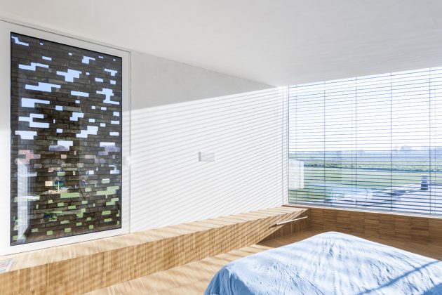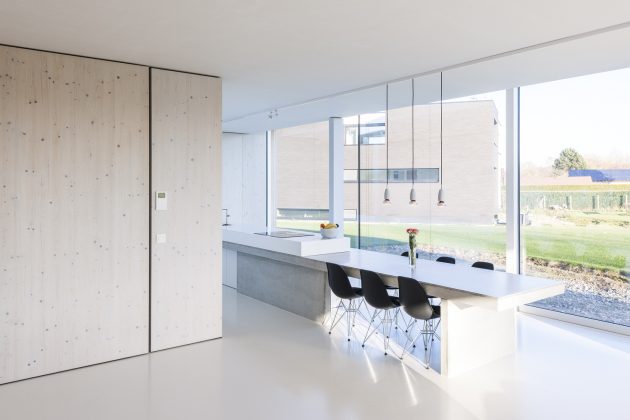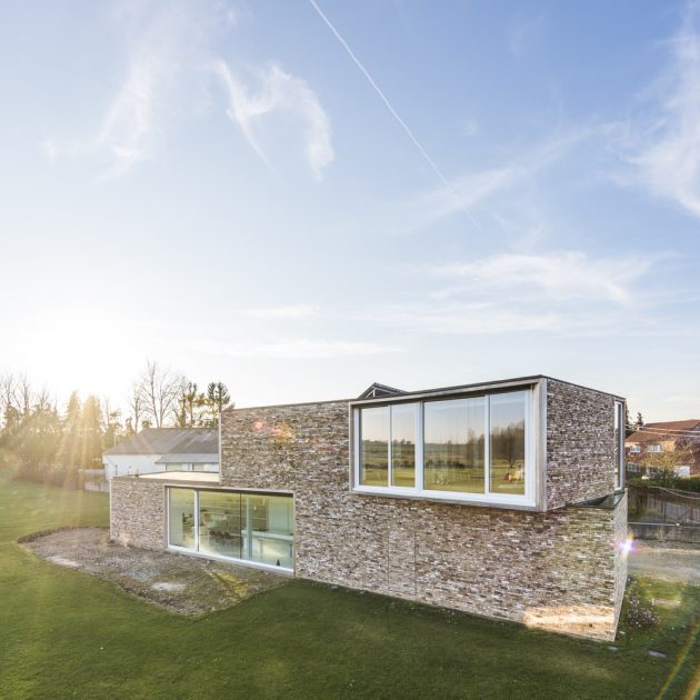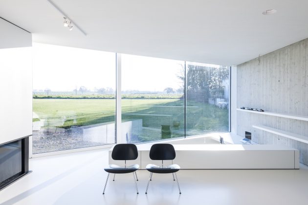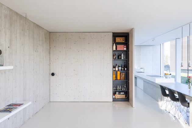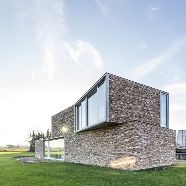 DMOA Architects, a Belgian based architecture studio, have designed The Screen – a contemporary house that is designed to maximize views of the beautiful sights from each space inside it. It is narrow, long and tall, this house sits on a stunning site that offers endless views of the lush, green landscape of Bierbeek in Belgium. Unfortunately, there is a trucking company right next to it, so it has to act as a screen that covers up the noise and views of its neighbor.