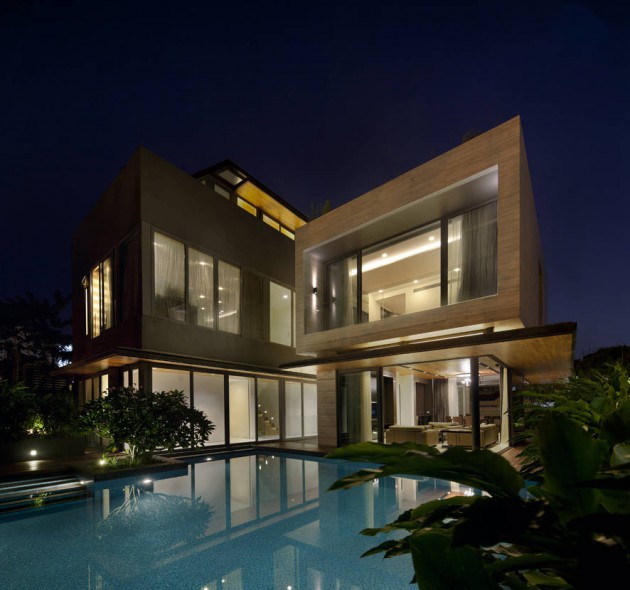 From the architects: “The client’s brief for this house was simple. Functionally, to maximize usable area and to incorporate greenery. Aesthetically, to use travertine copiously as an architectural finish. Inspired by the Italian urban-scape during his travels, so too would travertine express this house.”
