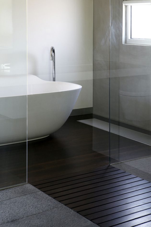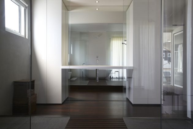 From the architects: “When you arrive at the house you enter via a formal pedestrian entry. Beyond that is a contemporary Chinese garden which in itself is a playful expression of east meeting west. A bridge over a dry riverbed directs you the office at the rear. The office can accommodate several people and has its own bathroom and kitchenette. This allows for future use as an additional bedroom or granny flat. Resale is always an important consideration and most of the spaces were designed to be flexible in use. It was agreed that one of the most unsustainable things in houses is doing premature renovations. This house was designed with long term vision in mind.