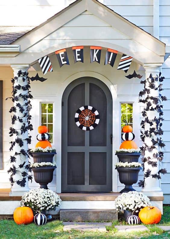Decorating the doors is another Halloween classic, although this section should be divided into two parts. On the one hand, there are the main doors of the country houses, where the decoration also includes the porch and the facade. On the other hand, there is the decoration of doors in flats and apartments, much easier to elaborate for reasons of space, although it all depends on how detailed we are.