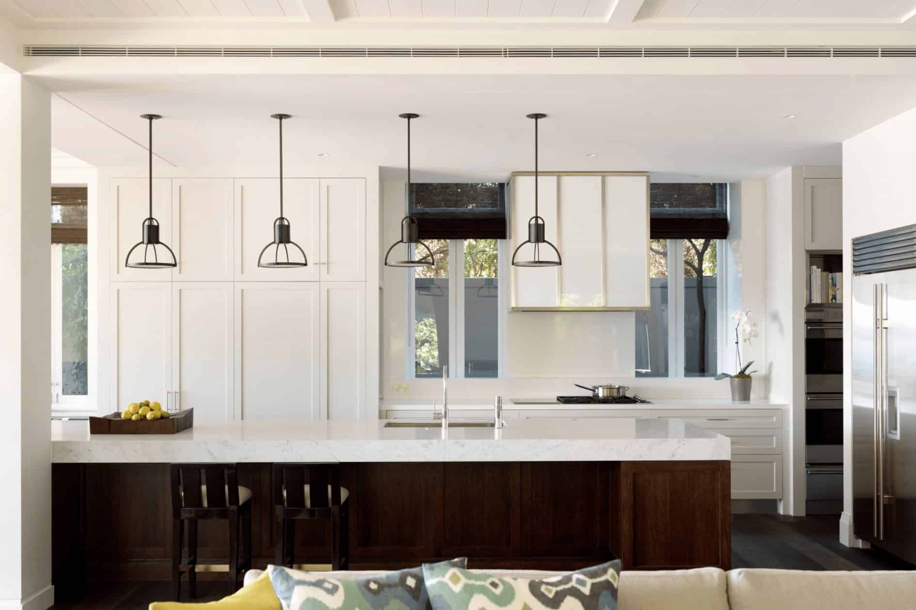 It is also important to remember that you should hang the lights over surfaces at a height that doesn’t block views in your kitchen. You should also consider switches and dimmers so you can adjust the level of lighting according to your mood or the task at hand.