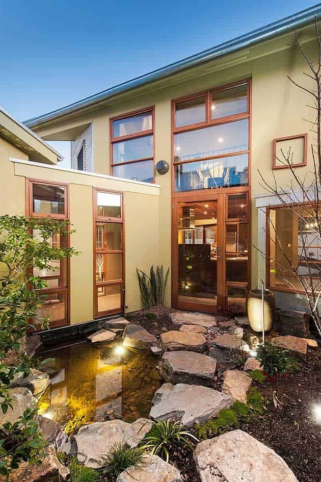 To keep the garden pond looking like a real pond, its design must be irregular, curved, and organic, as is often the case in nature.