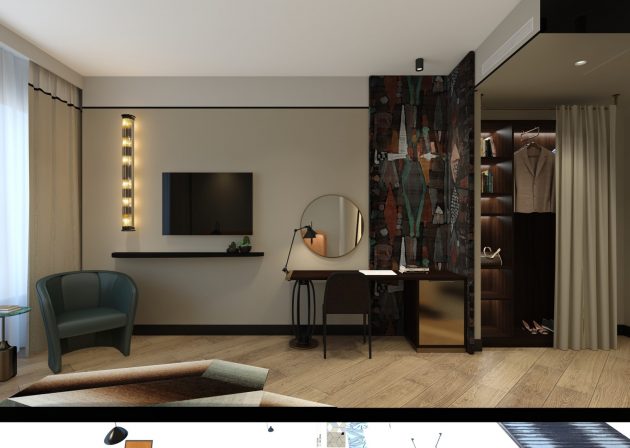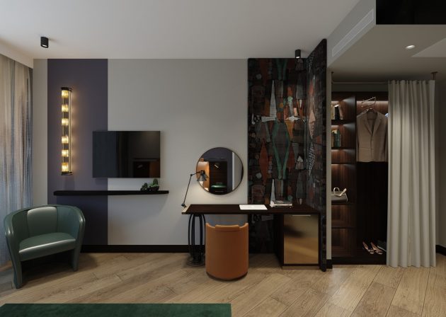 Designist wanted to reflect the modern, masculine and robust stance of the city in the design of Titanic Comfort Kurfuerstendamm Berlin Hotel. The public spaces of the building, which is close to the historical center of Berlin, were redesigned and renovated completely, whilst some furniture in the rooms was re-functioned. It is aimed to create an eclectic atmosphere by combining retro and modern styles that reflect Berlin. In the lobby, which is a small reception area, a welcome counter, a sitting area with a fireplace and a snack bar are planned, where hotel visitors can get snacks.