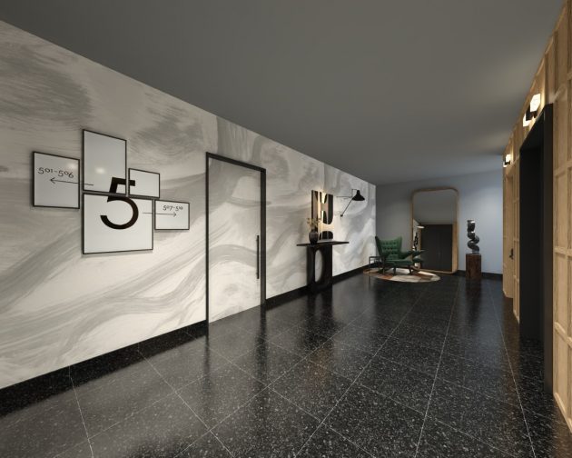 The room floors have been enlivened with wall paints and furniture, using the existing natural stone on the floor. A warm atmosphere is achieved in the elevator hall by covering the walls with natural oak and with the blinds of the ‘’Candaş Perde’’ brand. Dark navy blue carpet was used in the room floor corridors and was heated with picture frames of Berlin photographs and retro lighting by ‘’Dr.Light’’.