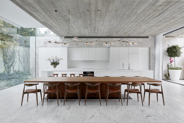 Rightfully called the Toorak House project, this four bedroom dwelling is all about creating the perfect balance between minimalist elegance and yet at the same time, a cozy and relaxing atmosphere. One of the ways that its design achieves this is through a spatial fluidity that opens up each space, connecting it with the others through the use of scale, volume and elegant materials.