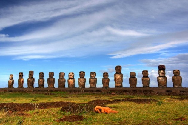 Easter Island, or Rapa Nui,  is a Polynesian island in the southeastern Pacific Ocean, at the southeasternmost point of the Polynesian Triangle. Easter Island is famous for its 887 extant monumental statues, called moai, created by the early Rapa Nui people.