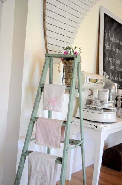 Here is another creative post how to make ”from trash to treasure”. All of you have some old unused ladders that we can repurpose as some new items. That way your home will get new elegant look with vintage tones. You can make DIY magazine rack, DIY towel hanger for the bathroom, DIY antique shelves in the kitchen and so many versatile items. We collect for you various DIY ideas hopefully to help you to find the right one to repurpose your ladder. Take a look and use your imagination and you won`t be wrong!
