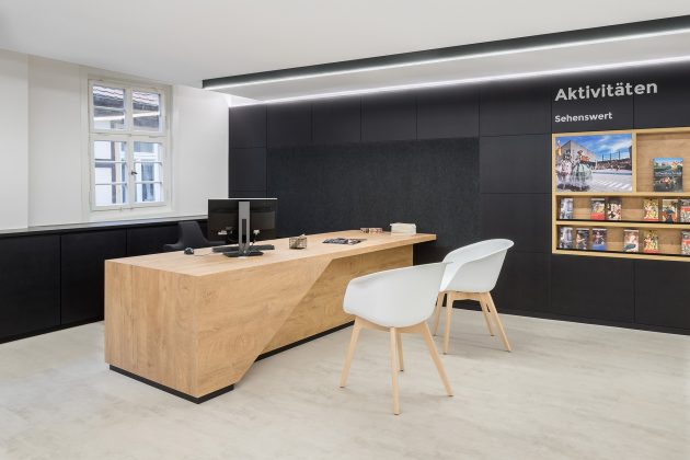 DIA – Dittel Architekten is responsible for the design concept as well as the planning and execution of the new Tourist Information Centre in Schwäbisch Hall, Southern Germany. The goal of the concept is to use the space to convey the city’s identity and allow this identity to be experienced through digital and analogue contents. Values such as service-orientation and the emerging cultural richness are incorporated into a modern design language, which goes on to form an exciting symbiosis with the traditional nature of the half-timbered building constructed in the 17th century. The area, which is under heritage protection, was completely renovated as part of the new concept. The Tourist Information Centre opened on 06 December 2017.