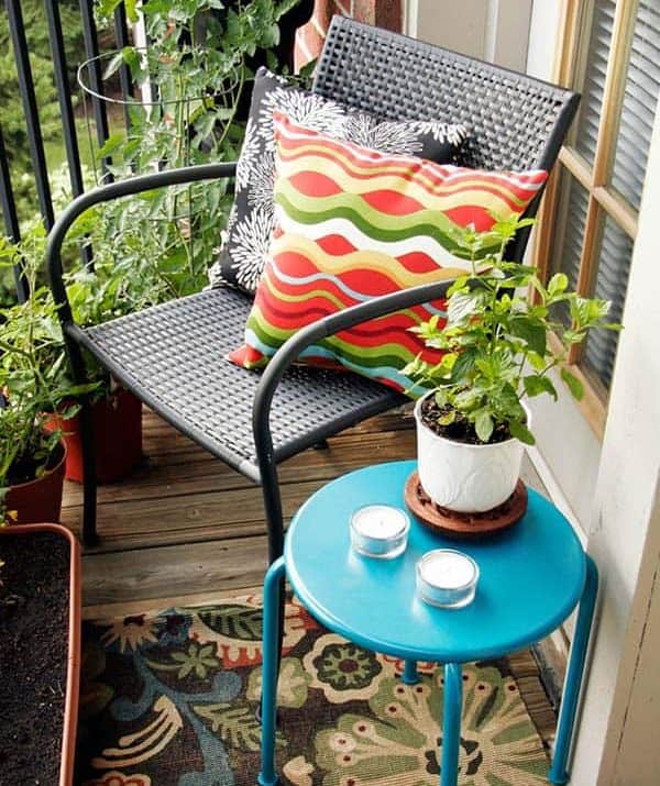 In all these needs, the aesthetic dimension is very important. You must never forget it, and even when you have a space for hanging out on the balcony or it serves as storage with cabinets and vacuum cleaners. And then it is important to use color, detailing, the shape of furniture … This is especially true for small balconies, where the flaws are even more noticeable. Details like jars with flowers and spices, lanterns, lights and decorative pillows are always welcomed, but a lot of details can result in mismatch and overcrowding. In addition, large pieces of furniture completely will close the outdoor space. Check out below some functional and beautiful small balconies- they will show you that having small balcony is not so bad. Enjoy in our collection!