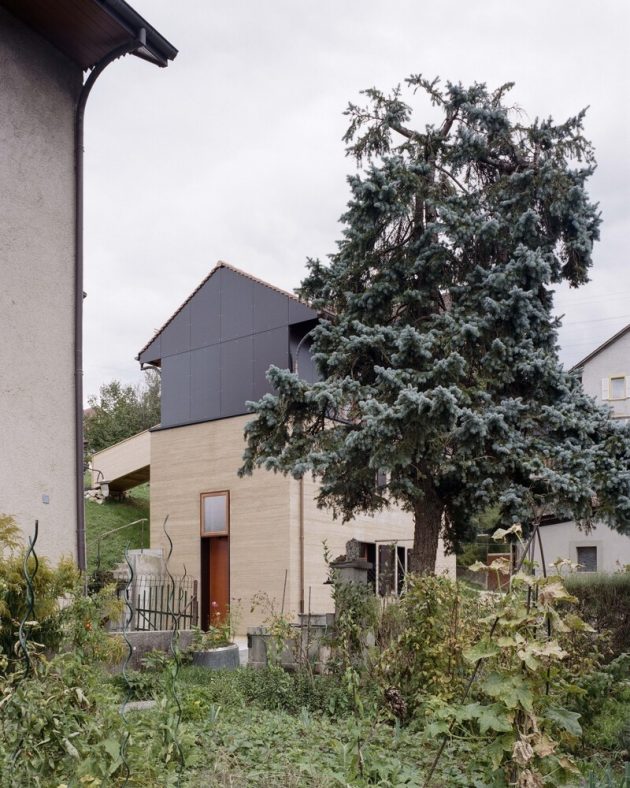 The Transformation of a Pigsty in Chavornay, designed by Madeleine architectes and Studio François Nantermod, is a remarkable project that repurposes a rural pigsty into a retirement home. With a careful purging of the interior volume, the building now houses a liberal profession on the ground floor and a parental refuge on the upper floor, which offers expansive views of the picturesque orchard to the east and the sunset over the barn roofs to the west. The vertical circulation is facilitated by two wooden helical staircases, and a winding path through tall grass leads to a wooden footbridge, completing the immersive experience. The building’s facade is adorned with a natural insulating layer made of lime and hemp, crafted in a participatory workshop to create an honest and raw coating that harmoniously integrates with the rural surroundings.