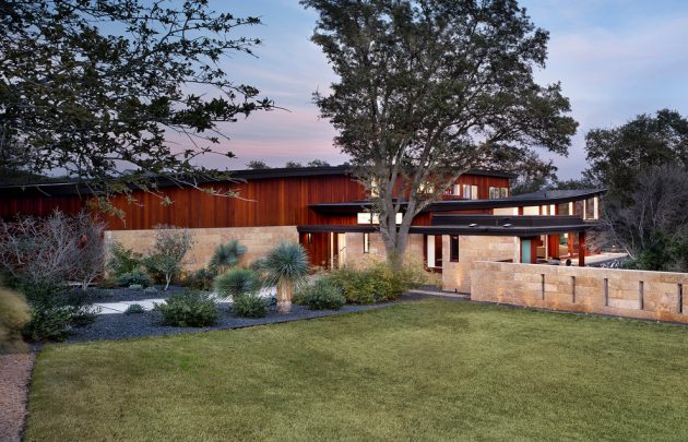 The Tree House is a stunning single-family home located in Austin, Texas. It was designed by a local architecture firm, Miró Rivera Architects who have proposed and completed a design with two separate roofs that cover the entire 5,250 sq ft structure. One of the roofs is convex while the other one is concave. The concave one makes sure that the inconspicuous facade blends into the surroundings and provides privacy for the bedroom.