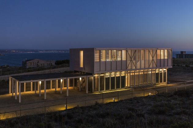 The construction technique of the wood was used to generate the architectural design, making the structure appear more as a reductive technique rather than an additive one. The main character in the final result is the construction technique, resulting in a stunning and harmonious design.