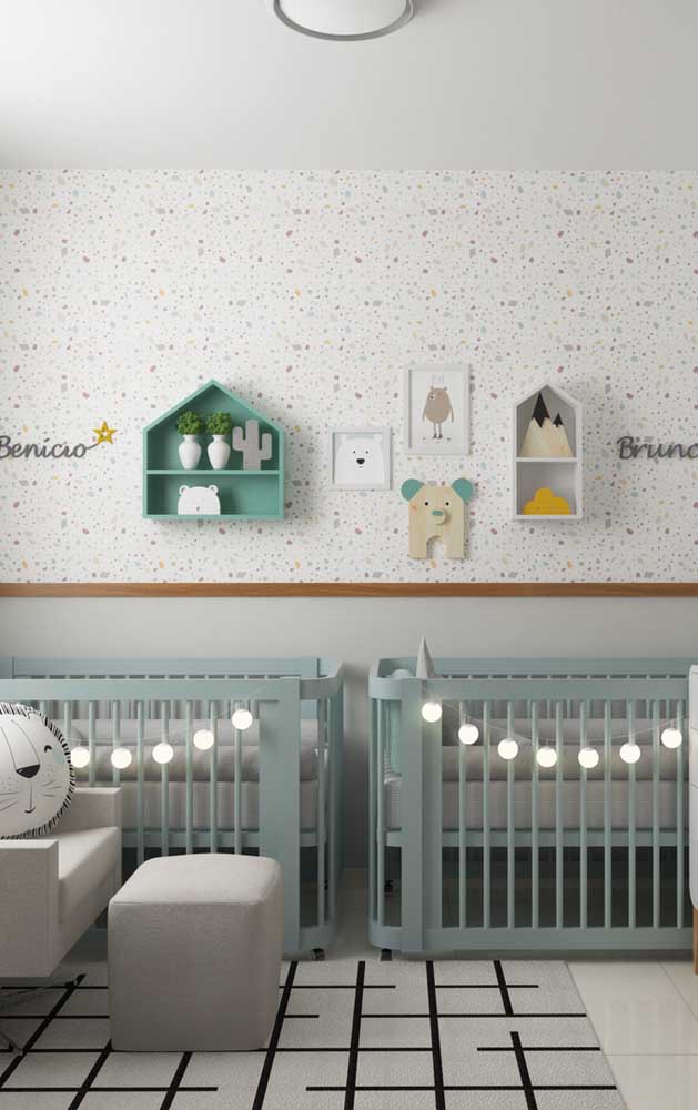 When the twins are of the same sex, a recurring option is to decorate the entire room following the same color scheme, but if the twins are of the opposite sex, that is, a couple, parents usually choose to “delimit” the corner of each one with a specific color.