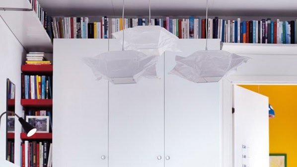 Some open shelves are good idea if you plan not to occupy a whole wall. It will look nice as a decoration and at the same time be functional.