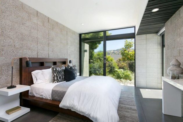 The modules of the insulated, ground face concrete block helped impose a rigor to the plans that is easily lost in wood frame construction. The blocks allowed for an honest and attractive expression of structure that brought a lot of architectural value to both the interior and exterior while conveying the texture and permanence of stone. Furthermore, the thermal mass and integral insulation of the block allowed us to open up large areas of glass and still outperform California’s stringent energy requirements by a large margin.