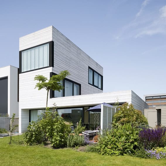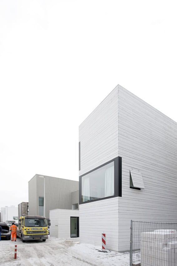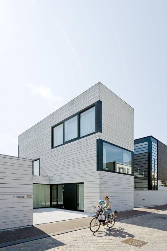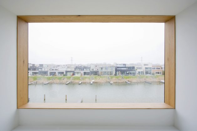 From the architects: “Close and compact are the residences lined up along the waterside of Grote Rieteiland, an artificial island in Amsterdam’s hip neighborhood Ijburg. This plain and sober urban villa is developed within a strict and complex set of urban rules. The villa with its reduced design lives from its refined materialization and level of detailing.
