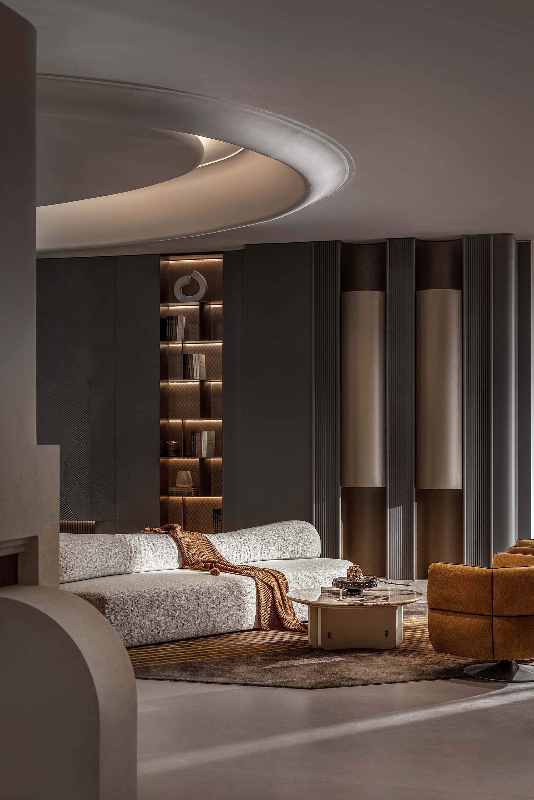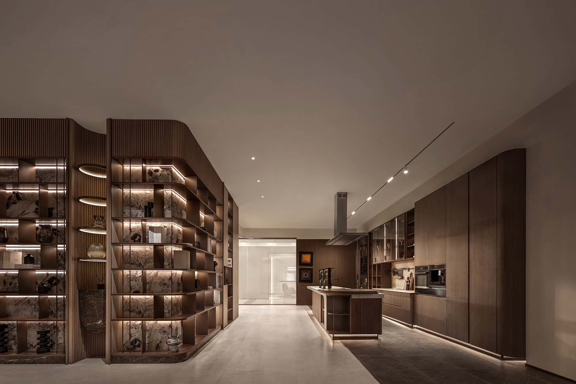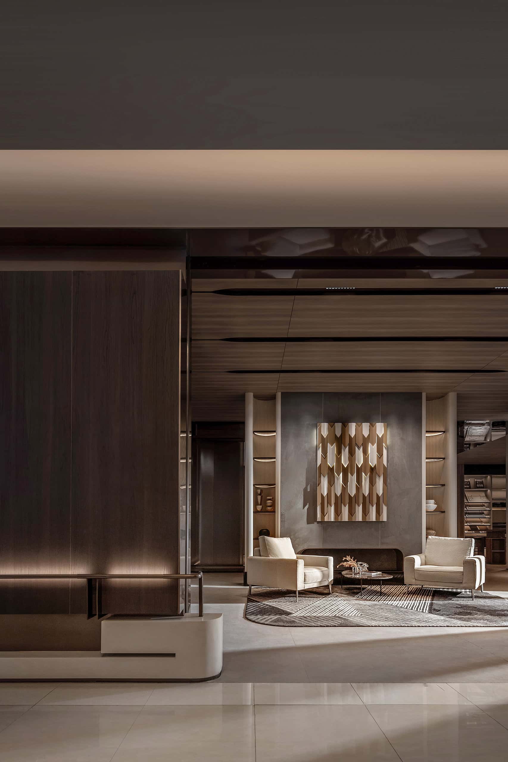 Zhuguang Lighting designed the lighting system to highlight every texture and curvature. Linear light strips trace the contours of the ceiling and furniture, emphasizing the sculptural rhythm of the interior. This interplay of light and shadow produces a constantly evolving visual experience — an essential part of the showroom’s narrative of discovery.
