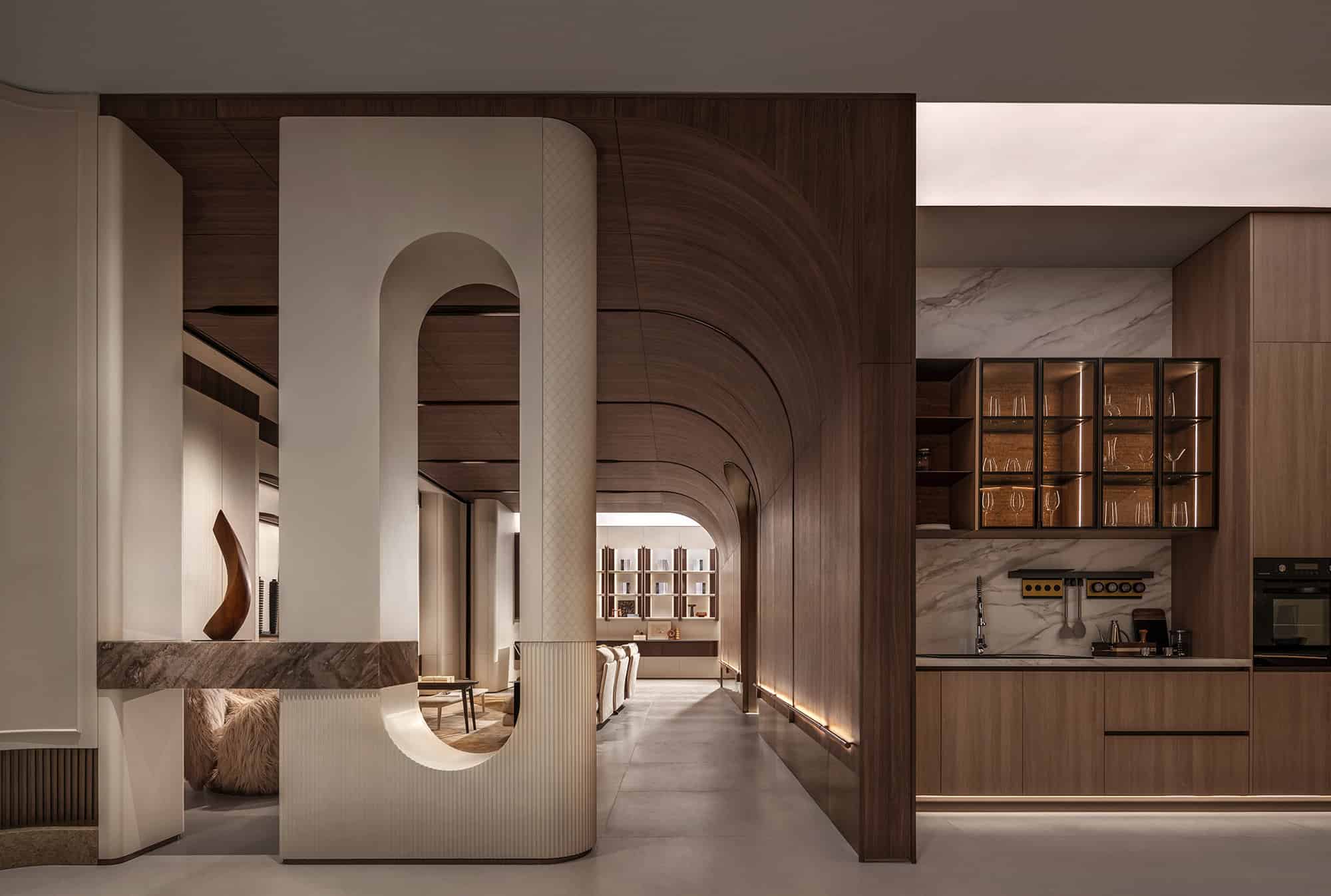 Arched corridors and contemplative nooks reinterpret Chinese spatial philosophy through a modern lens. Each space is both functional and emotional, encouraging exploration and reflection. The combination of traditional craftsmanship and contemporary furniture from Italian brands like VALENTINI, Airnova, and GERVASONI creates a sophisticated international dialogue.