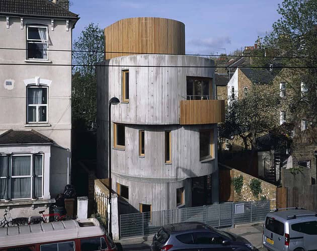 The VEX House is a unique building in London designed by Chance de Silva architectsIt’s design uses a composition of music and architecture to create a unique construction. It was designed in collaboration with Erik Satie’s piano piece “Vexations” which is also where the inspiration from the name came from. The round sections of the house reference the loops of the repetitive piano music.