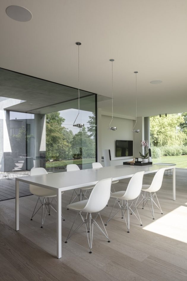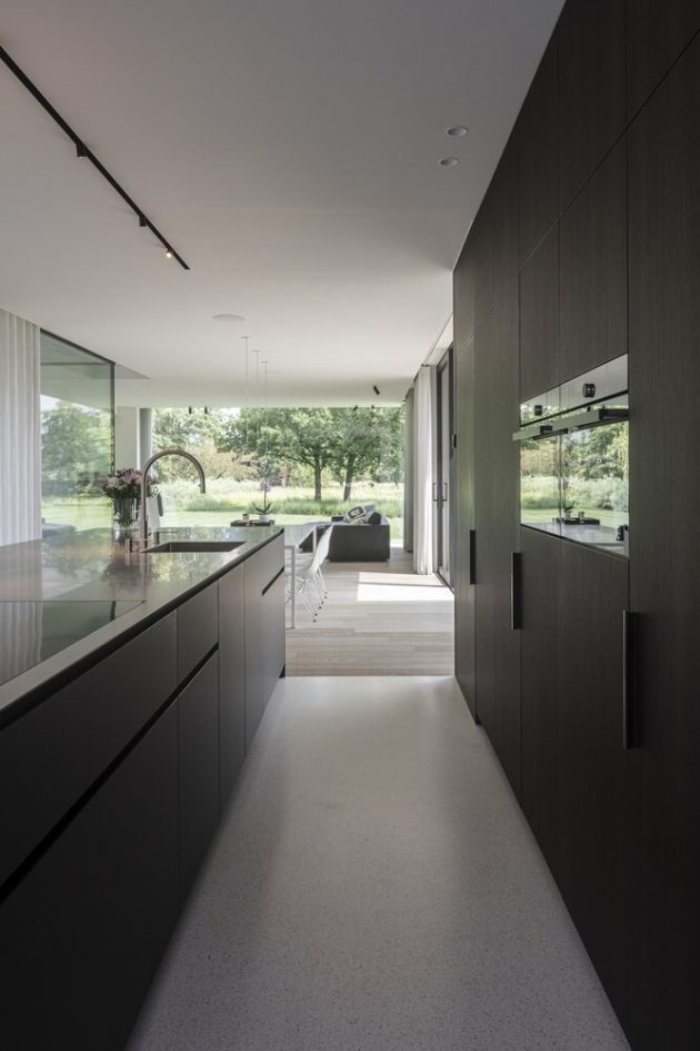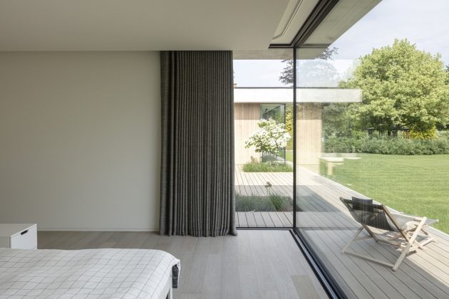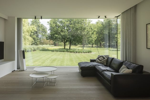 CAS Architecten has completed the Villa Bonh design in Bonheiden, Belgium. It is a 4,000 square foot home with a minimalist modern appearance that has a focus on natural light and connection to the outdoors. That means there are plenty of glazed surfaces that make it easy for the sunlight to illuminate the open plan interiors and plenty of access points towards the backyard.