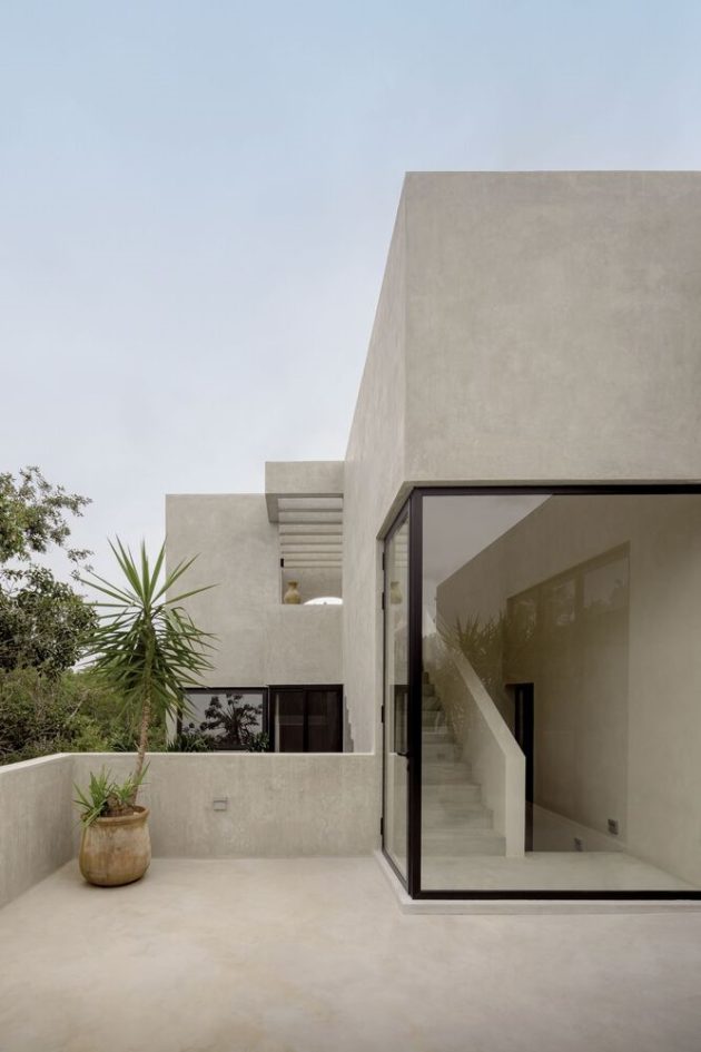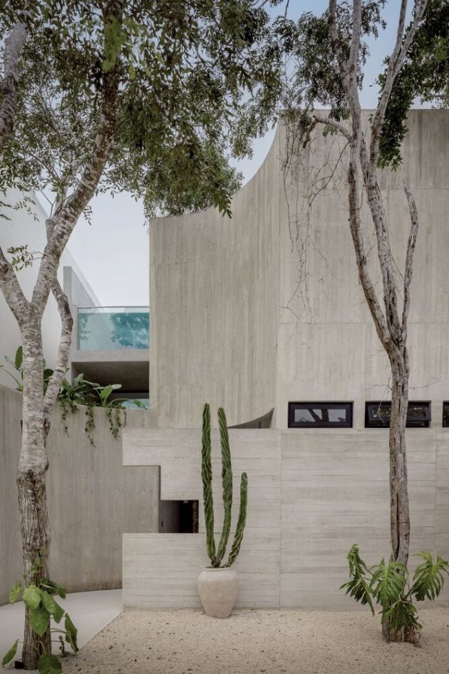This orchestration of movement, light and material creates not simply a house, but a sequence of immersive experiences. The overarching concept—of the house as spatial cave or cenote—is evident in the way light penetrates, volumes shift and nature envelops the architecture.