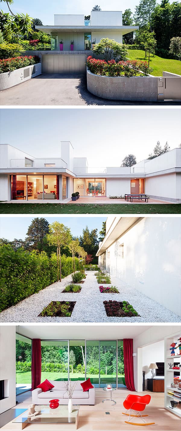 Villa G is a contemporary family home located in Sorengo in the district of Lugano in Switzerland. It was designed by SCAPE, an Italian studio who have built this home around contrasting volumes that rise up from the ground.