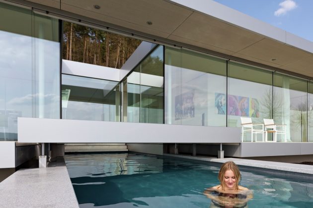 Villa K, located in Thüringen, is the first German project for Paul de Ruiter Architects. The energy neutral villa, discrete and integrated in the natural environment, strongly reflects the wishes of the client and adheres to minimalist principles. The result is a straightforward, innovative residence built from only glass, steel and concrete.