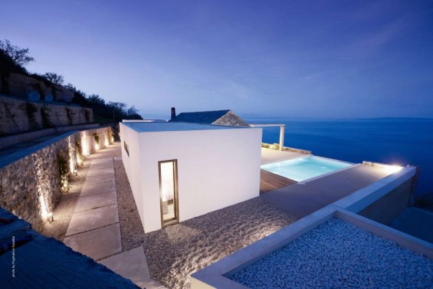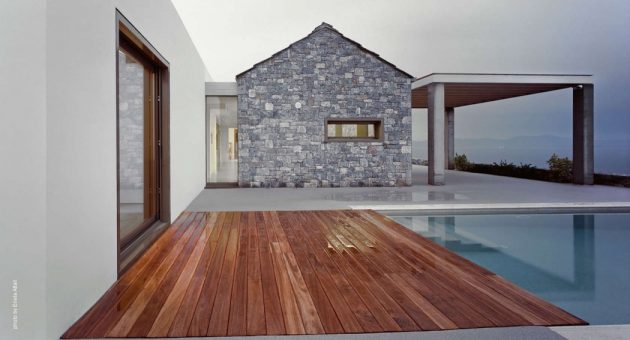 Designed and developed by Studio 2 Pi Architecture, Villa Melana is a contemporary seaside residence located in Tyros, Greece. It is positioned at the only available naturally formed plateau in order to avoid unnecessary groundwork and to keep the artificial intervention on the site to a minimum.