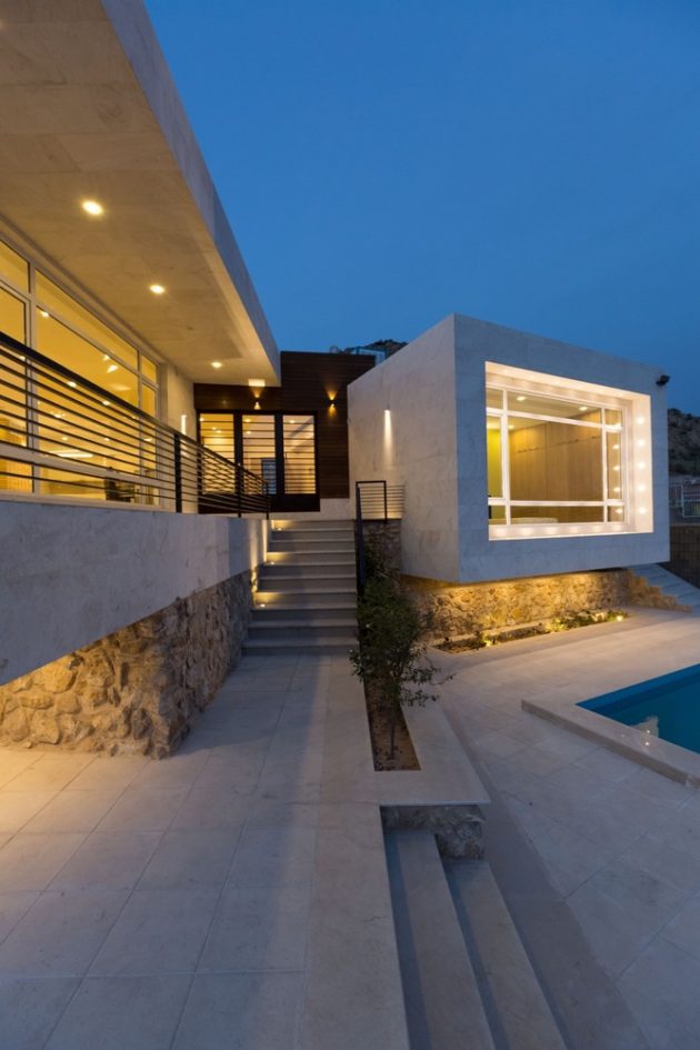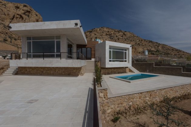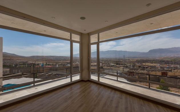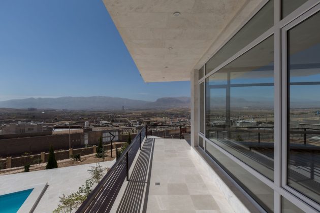 Designed by ShaarOffice, it was purposely perched on a hillside in Sadra, near the Sadra City of Fars Province in Iran. This way, the villa opened up to stunning panoramic views across the plains of the region.