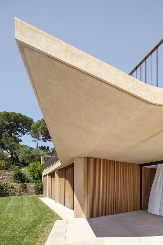 NADAA has designed the Villa Varoise project in the South of France. This luxurious contemporary dwelling offers almost 5,300 square feet of lush living spaces located on a hill populated by olive trees and a vineyard. The home was designed as a way to create a beautiful living space for the family that intends to cultivate the surrounding landscape.