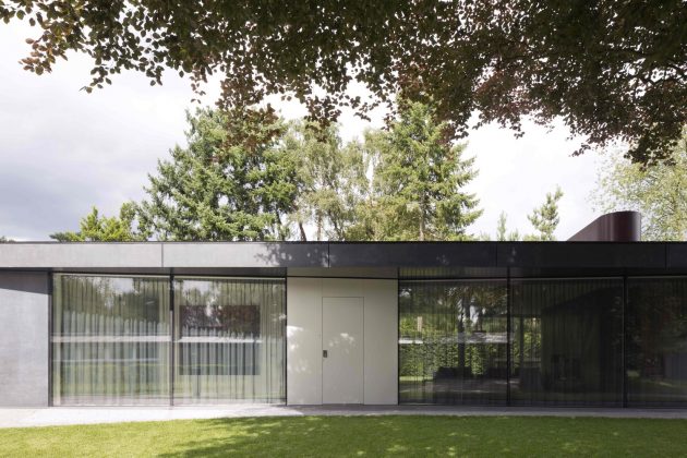 Barcode Architects from The Netherlands have designed a modern villa in the Brabant region of the country. Called Villa X because of its shape, it is a single-story residence with almost 2,500 square feet of living space to boast with. The design of this elegant home features a freestanding volume with clear geometries surrounded by a beautiful, lush natural landscape.