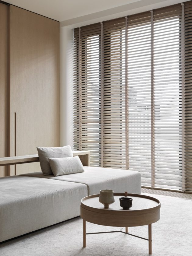The clients actively influenced the design process, suggesting the use of long wooden blinds. These blinds: