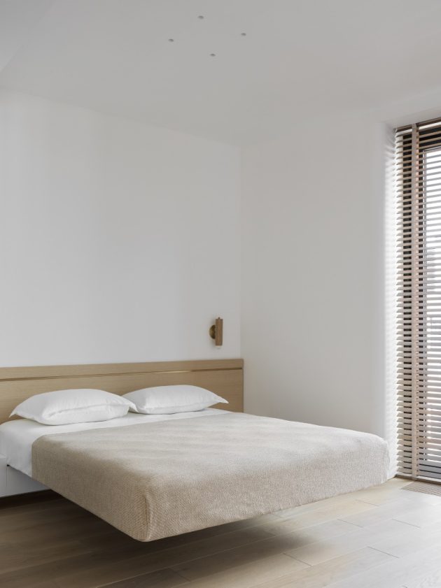 The design is often described as meditative, radiating pure calm and comfort. The architects crafted an atmosphere where relaxation and visual lightness take precedence, resulting in a home that feels both soothing and precise.