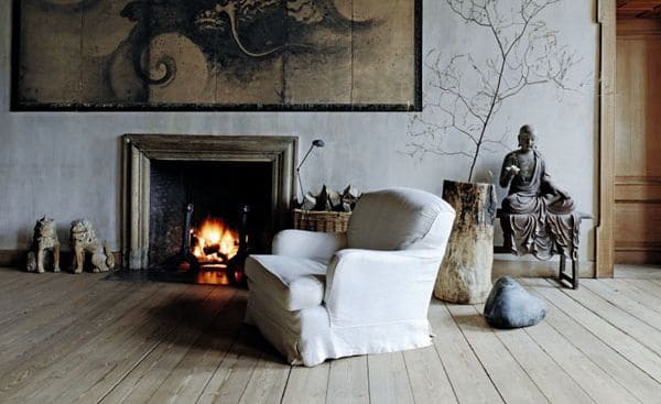 In another article, he commented on how essential this decorative and utilitarian element is in the rustic home. In the case of wabi-sabi, a good example is repeated. Besides, the warmth of the fire helps to create an interesting contrast with the neutral tone of the walls, as we can see in the image.