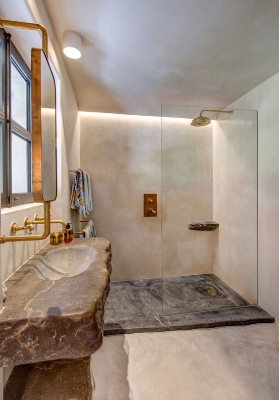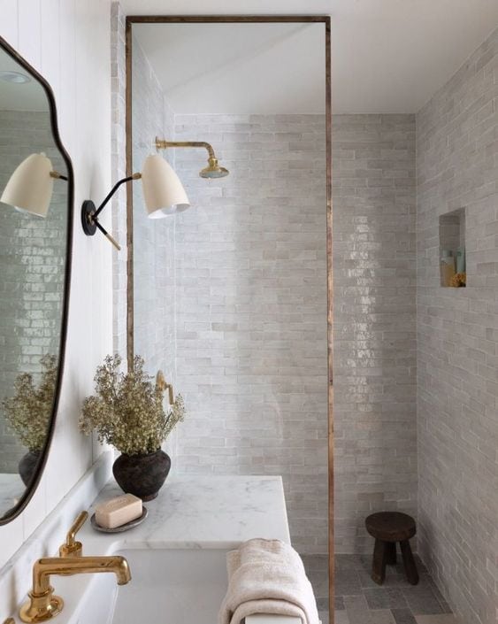 The walk-in shower creates a feeling of space and openness in the bathroom. The absence of a bulky shower stall or door makes the room appear larger and more airy. It is an excellent option for small bathrooms, as it optimizes the use of available space.