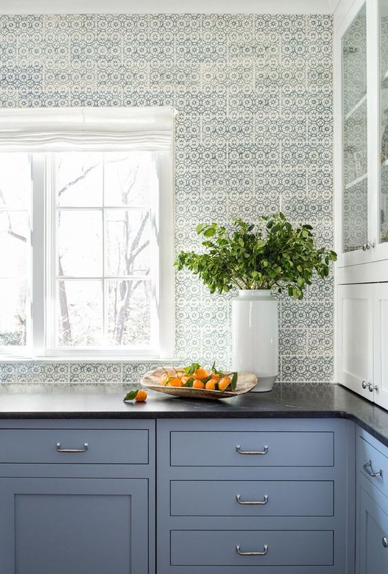 Because kitchens are one of the most important rooms in the house. A room that opens up to the rest of the house through the new open kitchen designs or beautiful glass doors. For this reason, wallpaper gains strength and occupies only some areas of the kitchen because it is still not the most suitable material for some areas of the kitchen.