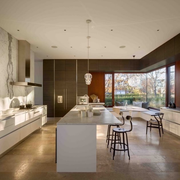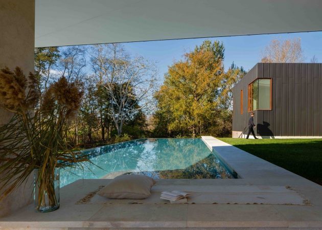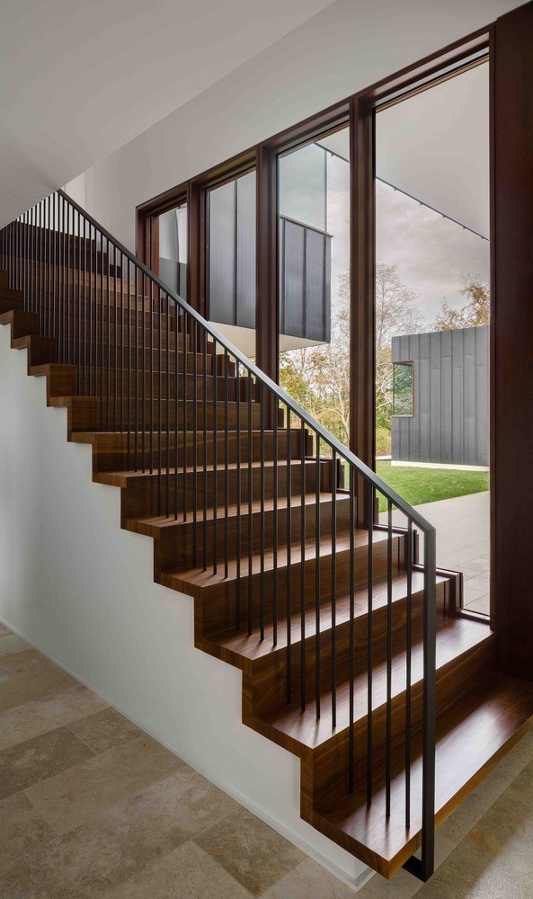 The Watermill House is a wonderful contemporary dwelling with 6,000 square feet of living spaces. It is located in The Hamptons on Long Island. It was designed by Office of Architecture. The design consists of three zinc-clad volumes, each with its own purpose. One is for social engagement, another is for guests and the third one is for the family.