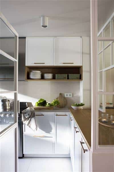 Small White Kitchen with Walnut Accents