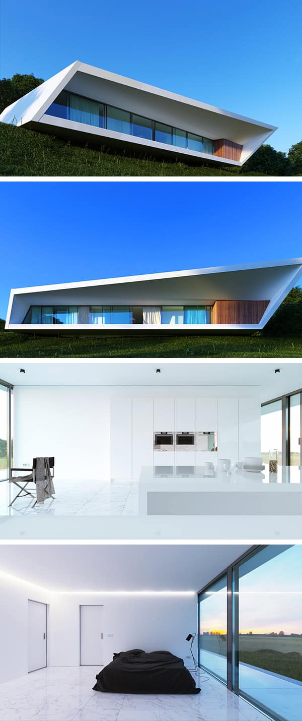 This 3,229 square foot home sits on a nearly flat site, which made the construction a lot easier since only minimal excavations were performed during the process. One of the most unique features of this home is its exterior design which is formed by a concrete frame coated with a smooth white lime plaster.